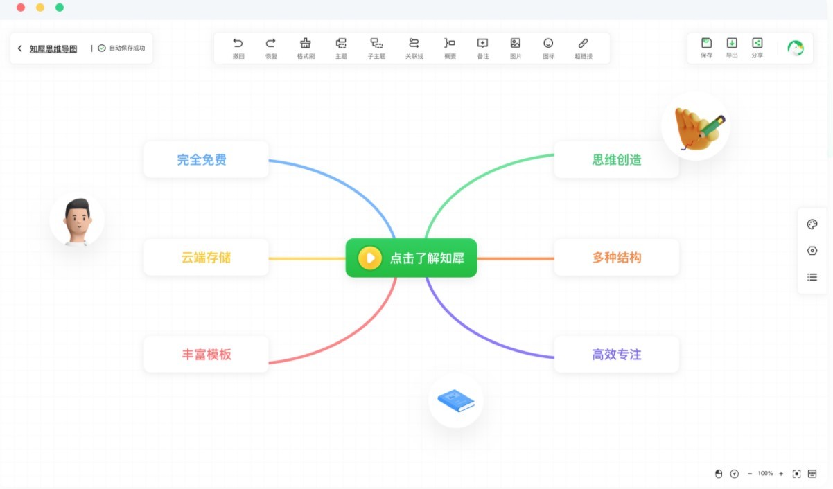不用担心创作正酣的时候被告知收费,知犀思维导图完全免费了所有功能,丰富且简单的功能助你提高效率
