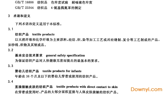 本标准规定了纺织产品的基本安全技术要求、试验方法、检验规则及实施与监督。纺织产品的其他要求按有关的标准执行,适用于在我国境内生产、销售的服用、装饰用和家用纺织产品。出口产品可依据合同的约定执行。