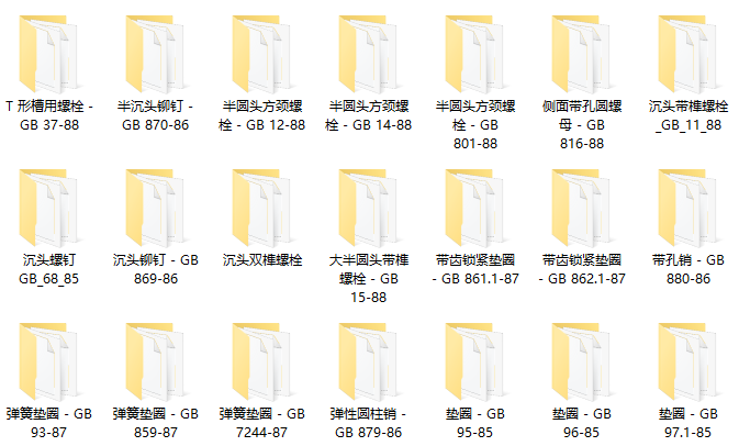 cad标准件图库可以帮助用户快速的创建标准件模型,包含了cad常用到的标准件,包含192个标准件分类,5589张cad图纸,例如半沉头铆钉 - GB 870-86,侧面带孔圆螺母 - GB 816-88,带齿锁紧垫圈 - GB 861.1-87,垫圈 - GB 97.2-85等,点击下方提供的地址可以免费打包下载这份资料。