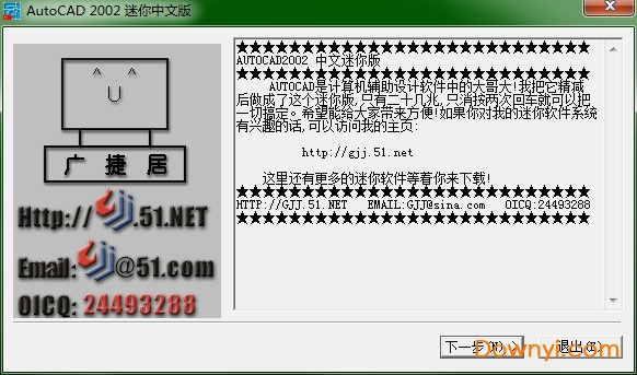 autocad 2002 简体中文精简绿色单文件版贵在是程序小巧、方便广大朋友使用。如果已安装dwggateway插件,能在低版本cad里打开高版本autocad格式文件,则可以生成pdf文件,增加了少量字体。对于现在动辄高达几g的新版本程序,autocad 2002 简体中文精简绿色单文件版绝对是对制图要求不高的人的首选。