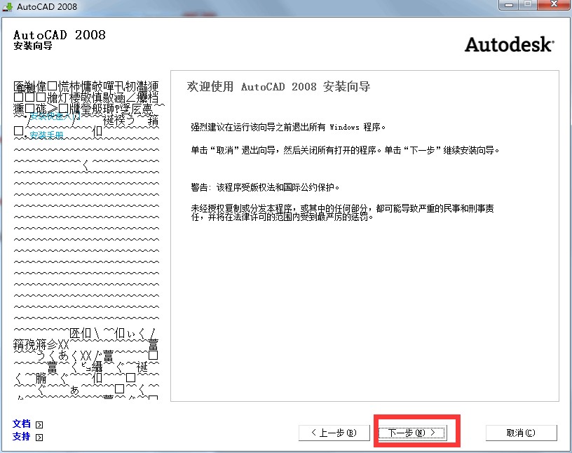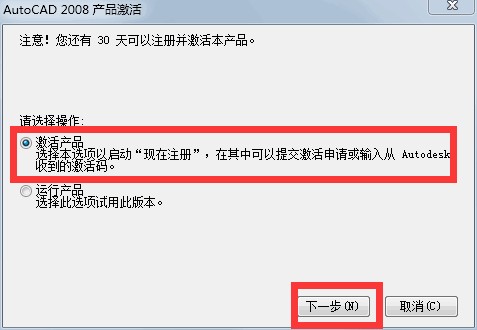 1.双击桌面图片可以正常启动AutoCAD 2008,成功启动后,会提示你进行注册激活,我们这里点“下一步”