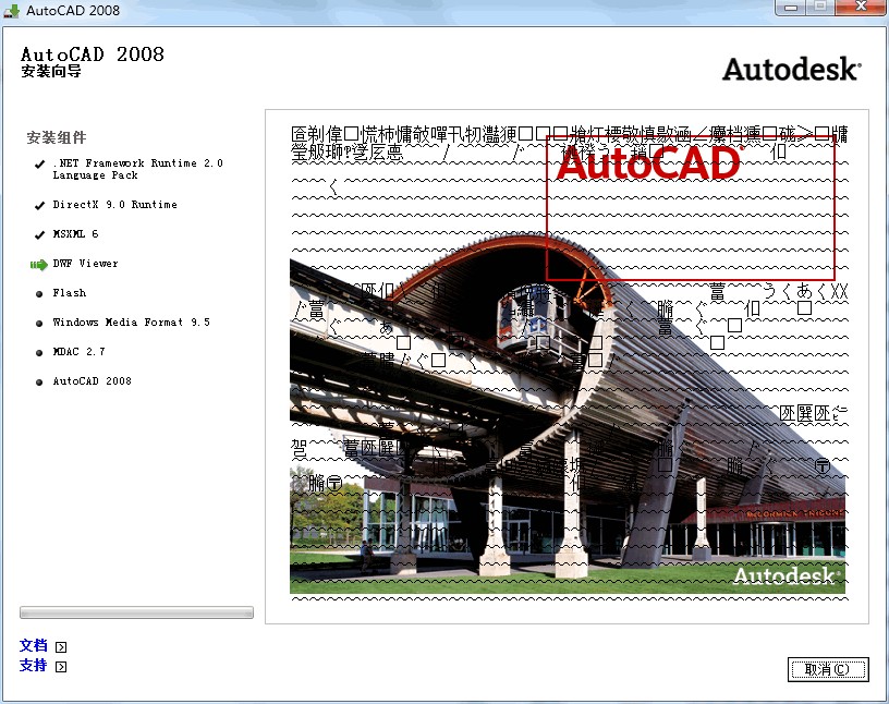8.AutoCAD 2008安装中(要等待左侧的组件全部安装完成才可以,速度可能有点慢)