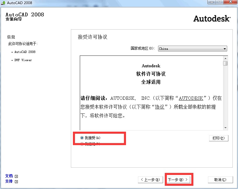 5.勾选“我接受”,然后点“下一步”