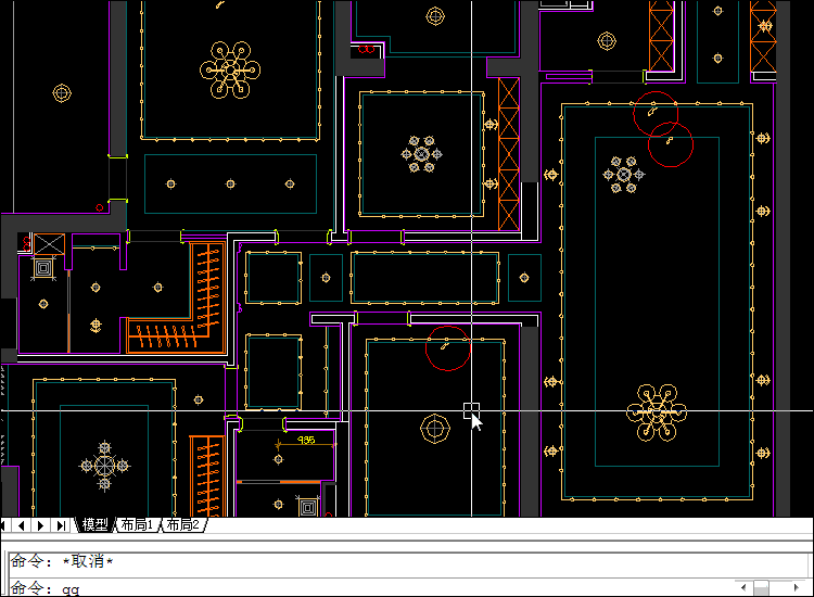 找到你需要的多段线角线,画好需要的长宽框架,输入qq命令可以智能根据线条上的断点为你偏移看线,几百个天花造型也可以一次性成型,而且图层以及颜色都是可以自定义的这个命令可以延伸到立面图绘制线条套线,门套线。