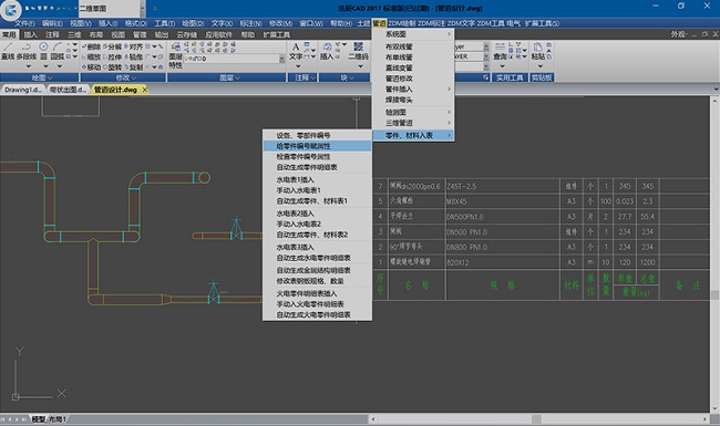 绘管道单、双线图、管道附件绘制、自动生成明细表。