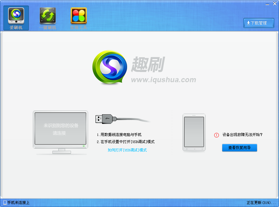 3) 刷机中请耐心等待,正常刷机过程约需要5-10分左右Q:刷机时无法连接手机怎么办?