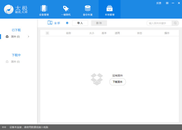 太极刷机大师是一款集手机恢复、数据备份、数据找回等多种功能于一体的软件,适合经常刷机越狱、数据丢失的同学。 使用太极刷机大师可以一键刷机,一键备份数据,方便快捷。太极刷机大师提供了四种刷机模式,普通刷机模式、保留数据刷机模式、itunes备份刷机和iTunes完全备份刷机模式,四种模式各有特点,用户可根据自己的需求来进行不同形式的刷机,让刷机只需一键!