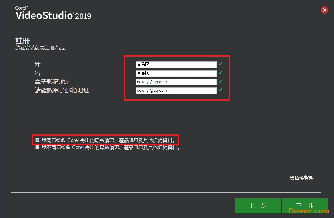 2、双击exe文件安装,目前只有繁体中文,英文,日语之类,tv系统可选择ntsc和pal,如果你购买了会声会影2019旗舰版64位序列号,可以输入序列号安装,否则只能选择试用版这个免费版本使用;