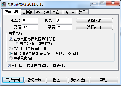 3.视频:avi格式录制,多压缩器选择(X264 Xvid DivX等),自定义码率,自定义帧数;