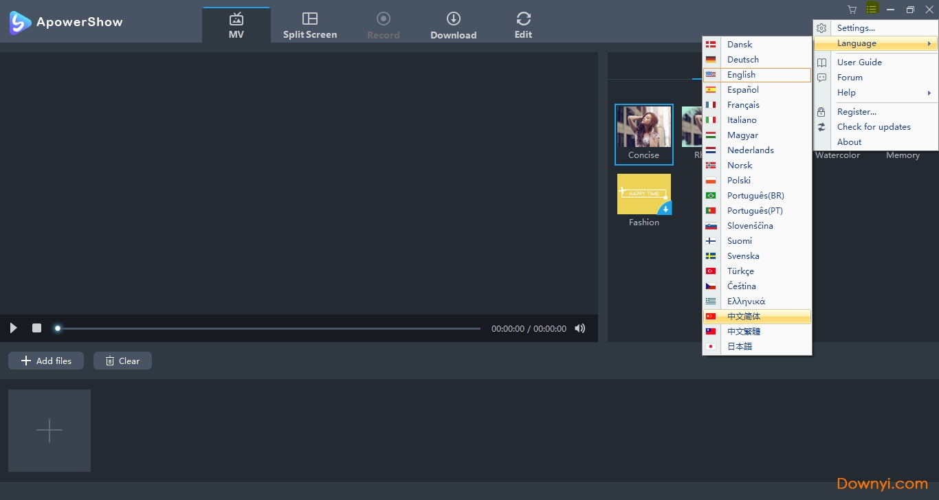apowershow可以帮您用图片、音乐以及数十种个性模板创造出最潮流的视频。整个过程无需任何复杂操作,只要选择您喜欢的设计,将照片或者短视频导入即可。直观的界面加上海量的视频模板,只需几分钟,你就可以用图片和音乐创建出一个极具个性化的视频。使用 apowershow,你可以轻轻松松使用它在电脑上创建出超炫酷的视频。除此之外,作为一站式视频制作软件,还内置了分屏功能,你可以用它来制作各种各样的分屏视频。有了此软件,你就可以使用婚礼、生日派对或者生活中重要时刻拍摄的图片短片制作出精美的分屏视频。不仅如此,您还可以选择20种不同的风格去凸显视频的分屏特效。添加一些音乐或者滤镜将会让分屏更加妙趣横生。同时也提供视频下载以及录屏功能,您可以充分利用它来下载或录制所需视频素材,然后将这些素材快速运用到您所制作的视频当中。您可以随时随地轻松转换视频以获得最佳播放体验。同时,您还可以将视频保存到本地文件夹或者免费上传至云空间。不要犹豫,快来与世界分享您的快乐!