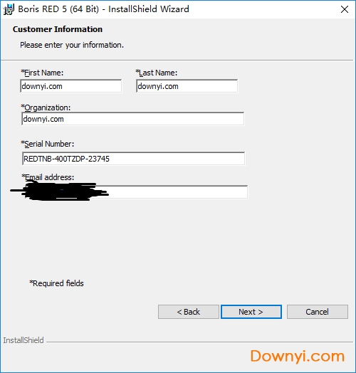 4、用户名可以随意,输入安装序列号“redtnb-400tzdp-23745”和自己的e-mail邮箱