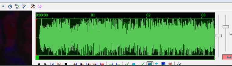 6、您可以看到音频已经可以正常播放,播放区右边的出现音频的波形图,波形图右面三个分别为对波形进行水平缩放,垂直缩放,调节音量。