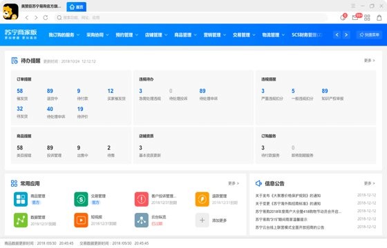 苏宁商家版是苏宁面向卖家的协同工作平台,核心是为商家提供完善的店铺管理工具、多样化的服务工具以及在线客服服务等,提升卖家经营效率。