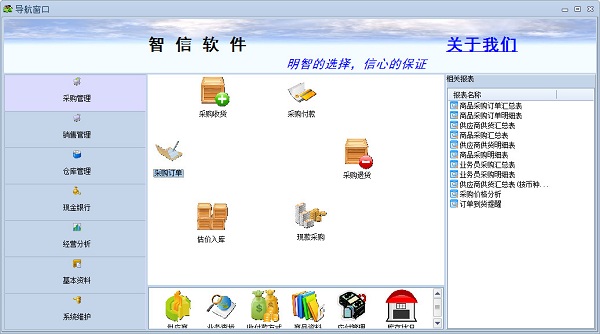 这款软件是智信进销存软件系列的服装类版本,具有服装行业特殊的行业管理模式,特别适合服装类企业业务管理,销售管理,财务管理,货品管理等方面的应用,主要分为客户管理,供应商管理,采购管理,销售管理,财务管理,仓库管理等模块。