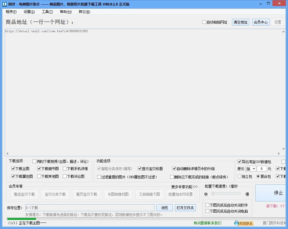 固乔电商图片助手是功能强大且全面的图片下载工具,它能够针对如京东、1688阿里、衣联网、一号店、易贝、拍拍、速卖通、淘宝等电商平台进行图片下载。