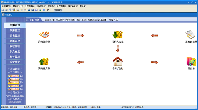 九、独特的采购进货模版设置,只需输入数量、进价,统一管理订货、退货以及供货商应收应付,大大提高餐饮管理效率。