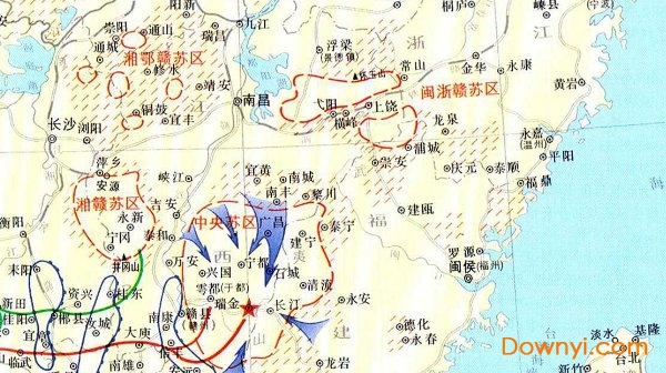 红军长征路线图高清版为你展现了革命前辈们走过的两万五千里,让你在奋斗的道路上能够学习他们的精神。这张地图中有非常详细的内容,不仅包含了战场动态,还有各种行进路线。如果你需要那就来下载吧!