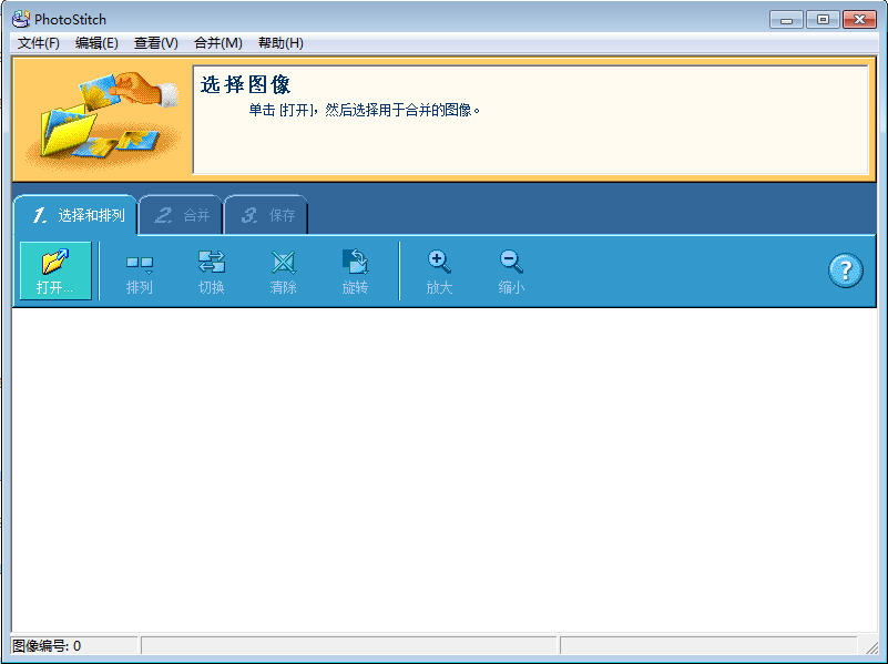首先启动安装好的PhotoStitch,开始合成图像。显示左图,单击[1.选择和排列]页面中的[打开]。这样将在PhotoStitch的界面以外弹出如右图的窗口。从这里选择制作全景的图像。以全景辅助模式拍摄的图像文件名是“ST×_××××”,很容易识别。不过要从大量的图片中选择出来也不容易,所以事先将要合成的照片放入一个新建文件夹就很方便了。然后全部选择,开始准备操作。一张张地打开,或者按住< Ctrl>键一次全部选择都可以。