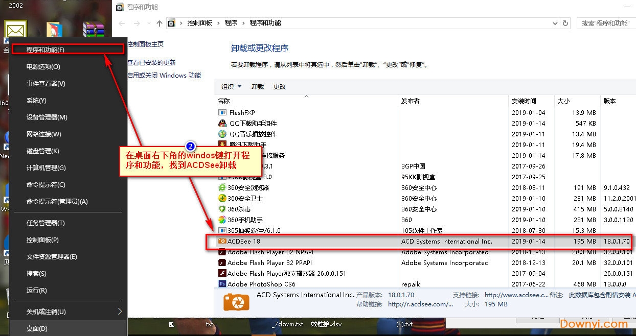 2.使用windows键打开程序和功能,找到acdsee18,点击卸载,如图: