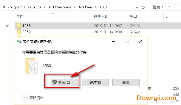 7.提示需要管理员才能够移动此文件,勾选所有,并且点击继续,如下图: