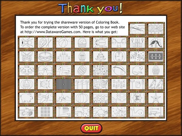 一个电子绘画软件,操作简单,其中有一个大大的按钮用来选择颜色,颜色种类繁多,同一页面画完后可以重复使用。正式版中包含50张图可供选择,其中有飞机、字母表、蚂蚁、蝴蝶、闹钟等。