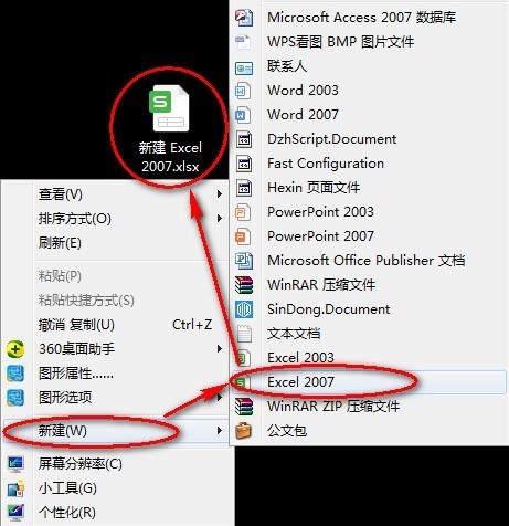 8.开始使用,鼠标右键-新建-excel2007