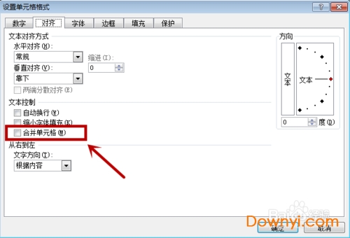6、在文本控制中,点击“合并单元格”前面的框,将其勾选上,如图所示。