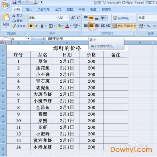 9、我们再点击红色的地方,也就是全选再居中,这样是不是更好看了呢!