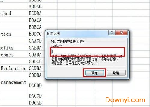 5、此时输入密码,再点确定即可,要连着输入二次,第二次密码与要第一次必须保持一致, 如图:6、加密后,再次开文件就需要输入密码,加密即成功。
