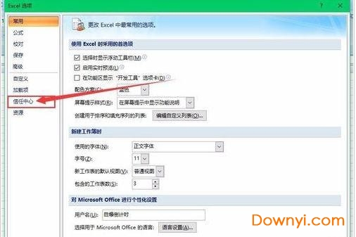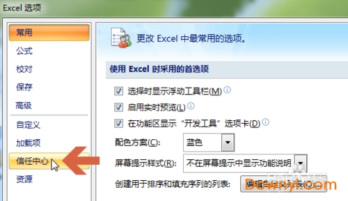3、点击excel选项左侧的【信任中心】选项卡。