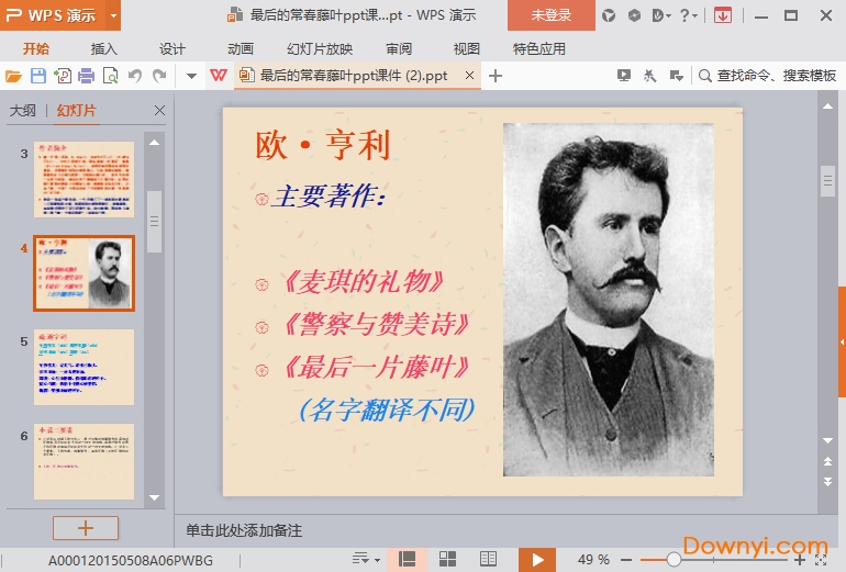 最后的常春藤叶ppt课件中比较详细的讲解了各种剧情内容,同学们在学习汇总更好的了解这篇故事和作者想表达的内容。如果你需要欢迎来体验!