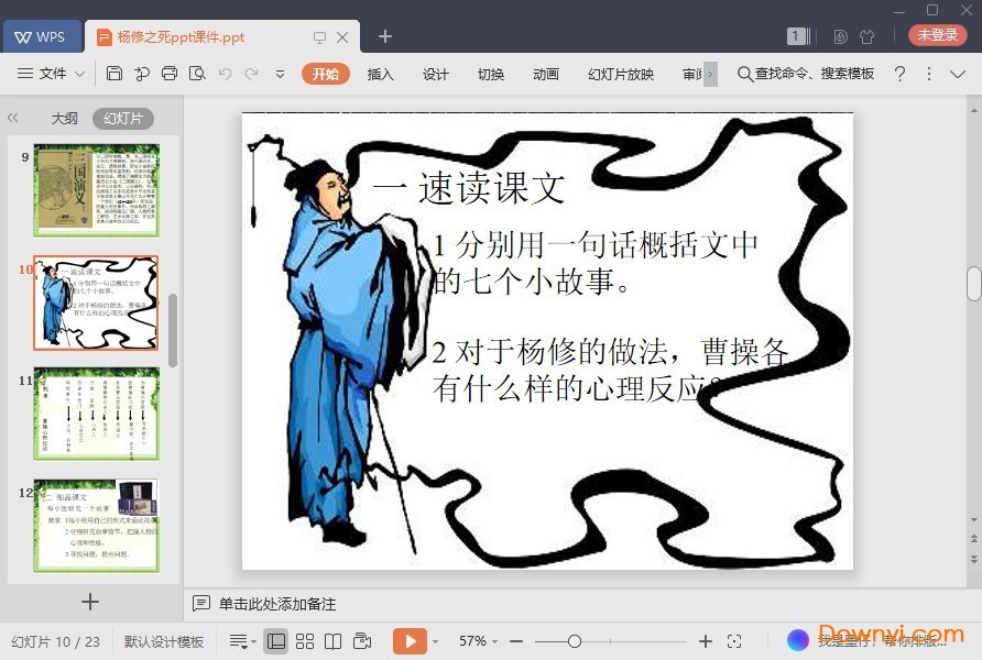 杨修之死ppt课件从三国演义之中一来讲解这件事情。杨修是才思敏捷之人,但是为什么会被曹操处死,而且是什么原因导致的?通过这篇课件可能会了解。欢迎来体验!