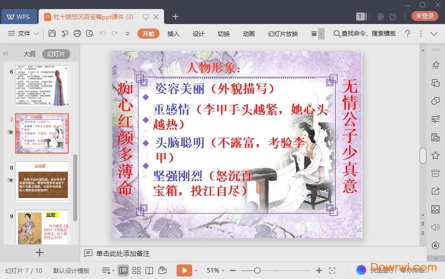 杜十娘怒沉百宝箱ppt课件为你在学习这篇古代小说的时候可以更好的滤清其中所述的内容,让你在第一时间可以找到你需要的故事情节以及对杜十娘的评价。课件讲述的比较全面欢迎来下载学习!