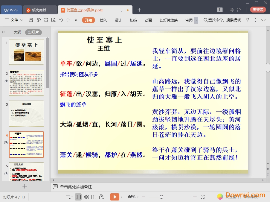古诗使至塞上王维课件通过不一样的方式为你提供有趣的学习方式,ppt的内容加起来都比较多,可以从多方面来了解这首诗。如果你想深入的了解欢迎来体验!