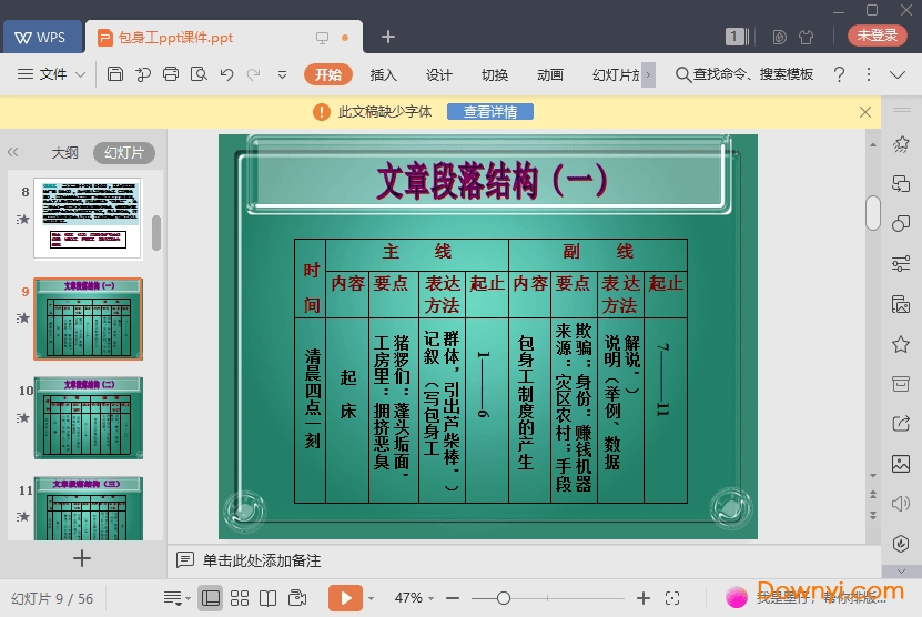 包身工ppt课件免费版为学生们学习这篇课文提供非常不错的帮助。通过从文中展现不一样文学题词,从作者的角度来完成学习内容。如果你需要这款课件欢迎来下载试用!
