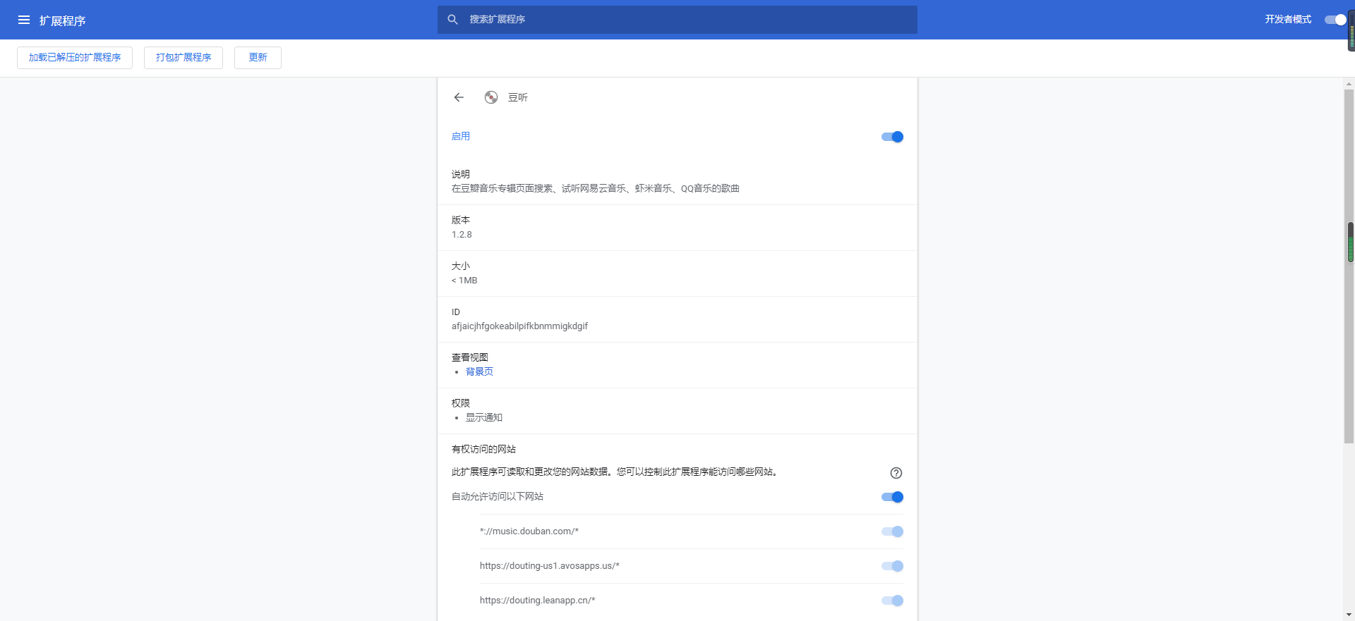 安装插件后,打开豆瓣网站的某张音乐专辑页面,即可看见右侧的「豆听」插件,无需设置。