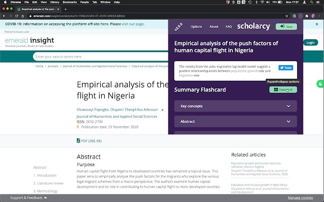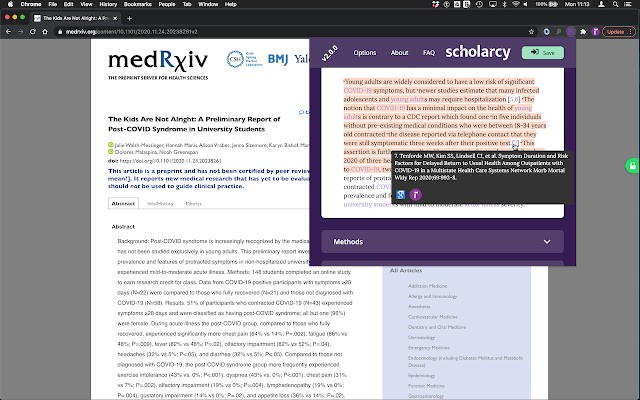 Scholarcy Research Paper Summarizer谷歌插件是让用户观看学术报告和论文更加方便的辅助阅读发件,插件在论文之中可以为用户标注出文章的重点,让用户阅读文章更加的方便。
