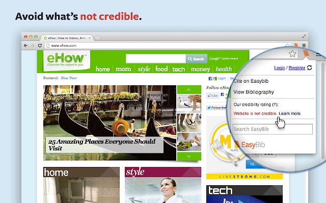 使用 EasyBib 工具栏一键引用网站,并接收有关您引用的网站可信度的建议。