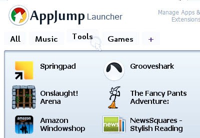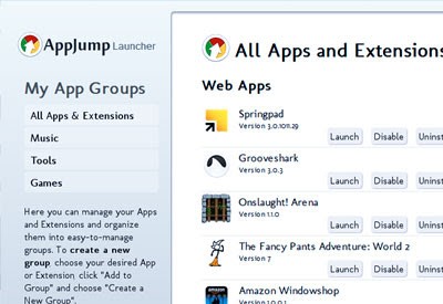使用AppJump,您可以将应用程序和扩展程序放入组中,以便轻松管理。您还可以在启动器中显示特定的应用程序组,并直接在浏览器工具栏上启动它们。