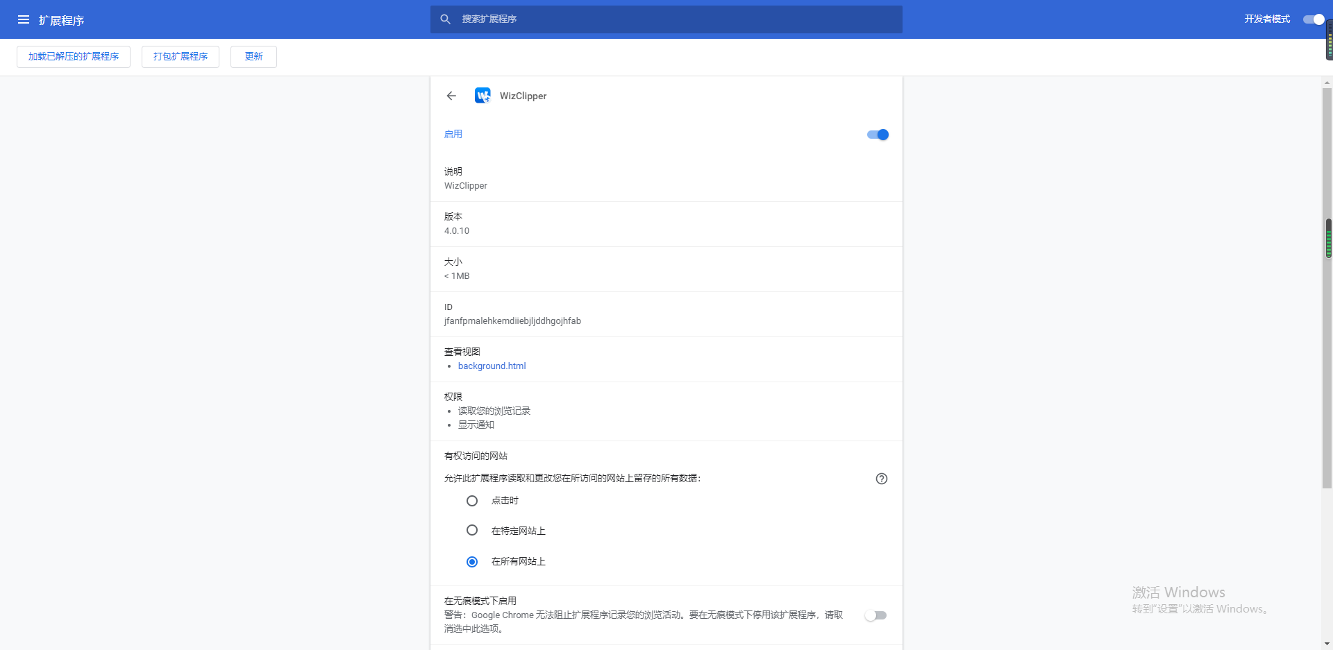 2.打开浏览器扩展程序选项,选择已解压的扩展程序