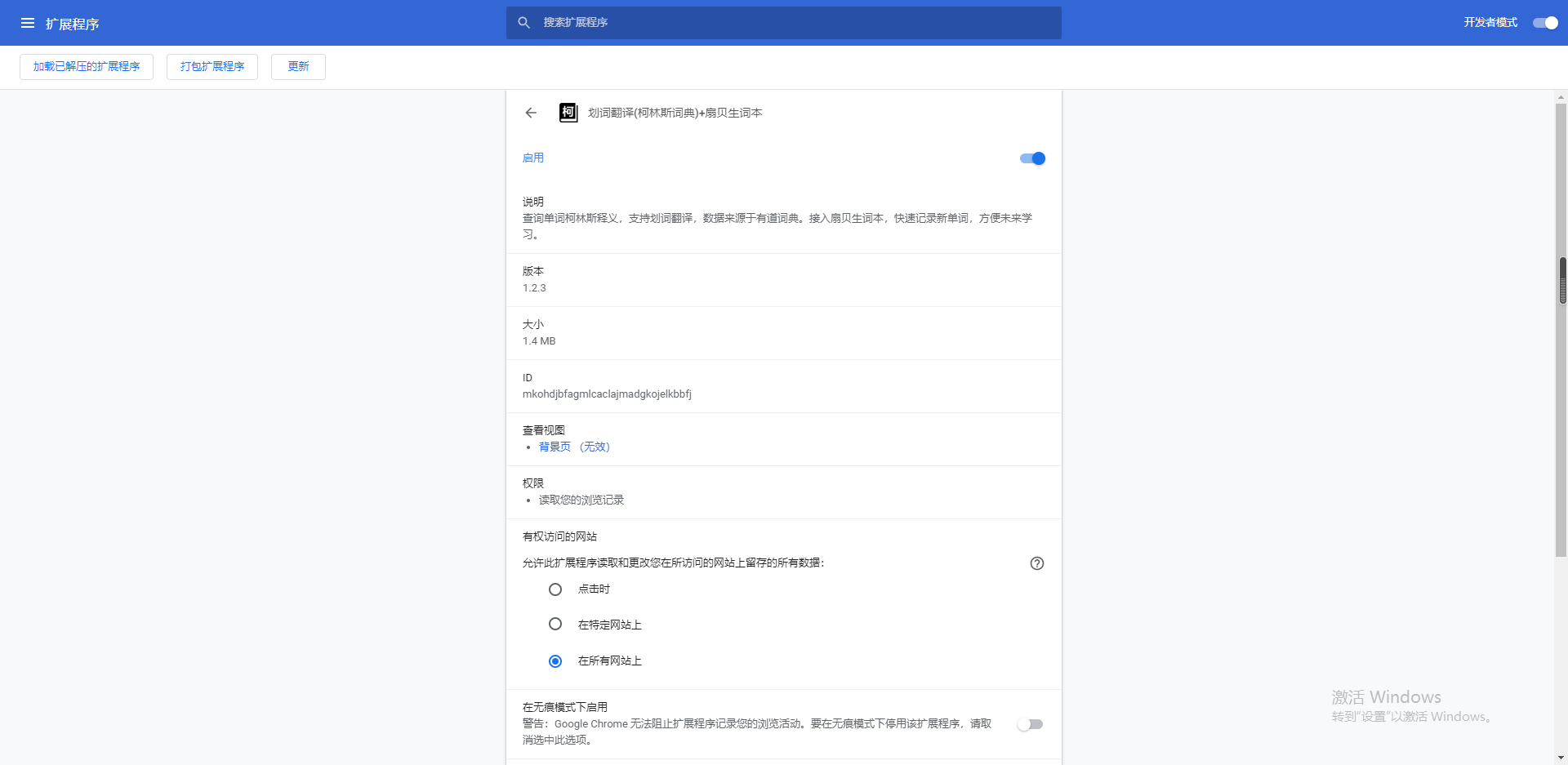 2.打开浏览器扩展程序选项,选择已解压的扩展程序