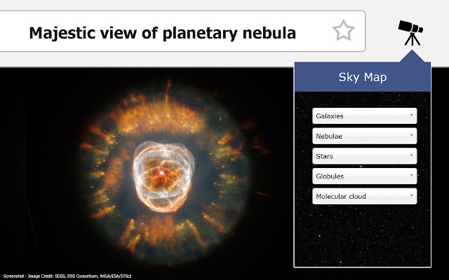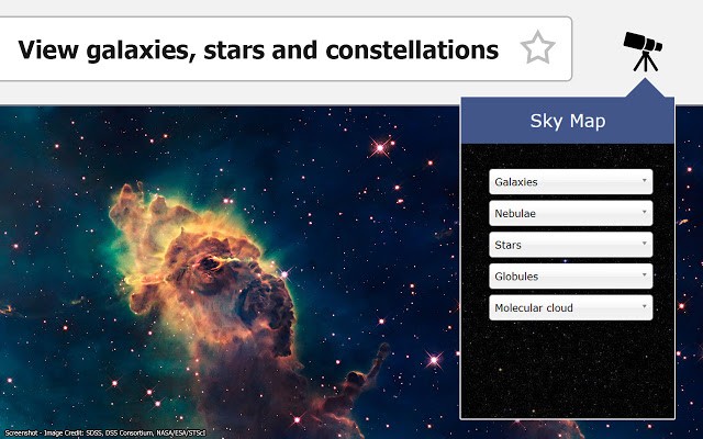 天空地图官方版让天文爱好者可以在浏览器之中随时进行天文观测的浏览器插件,非常多的星系和星座都可以在这里观看,让用户可以随时查看许多的天文景象,还可以学习许多的天文知识。