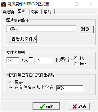 您可以在“文件名规则”中指定不同的文件名及保存类型(现支持jpg,bmp两种类型)。