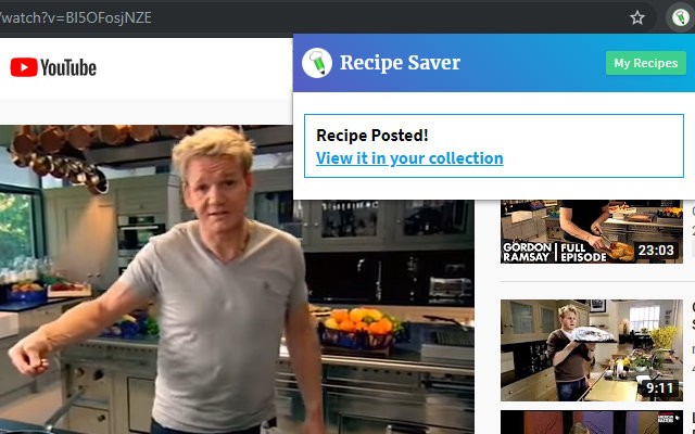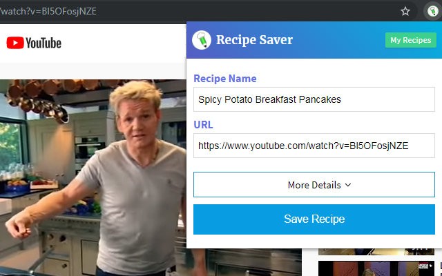 只需单击扩展程序的按钮即可抓取当前选项卡的食谱,然后单击“保存食谱”将其发送到您的 RecipeSaver.me 帐户!