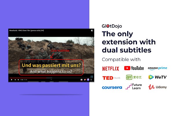 GlotDojo 是一个方便的翻译和语言学习工具,针对英语、中文、日语进行了优化。处理视频字幕。