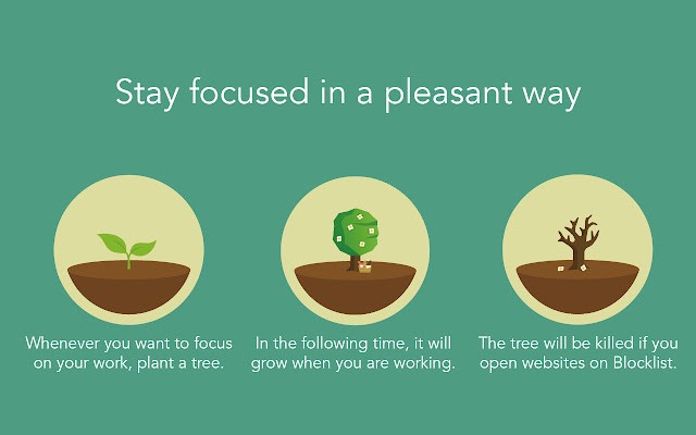 Forest利用一个轻松有趣的方式,帮助您远离网路成瘾的干扰。每当您希望有一段专心工作的时间,您可以在Forest中种下一颗种籽。在接下来的时间内,这颗种籽将会慢慢地成长为一棵大树。若是您禁不起诱惑,在这段时间内去浏览了在您黑名单内列出的网站,您充满生机、可爱的小树将会枯萎而死。利用这样游戏化的方式,您将可以更专注于生活与工作中。