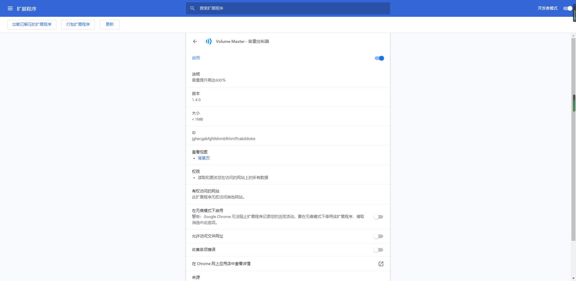 Volume Master免费版可以让用户控制你的谷歌浏览器的音量,让你在使用浏览器看视频、听音乐的时候可以拥有合适的音量大小,用户还可以将最大音量调制原本最大音量的六倍。