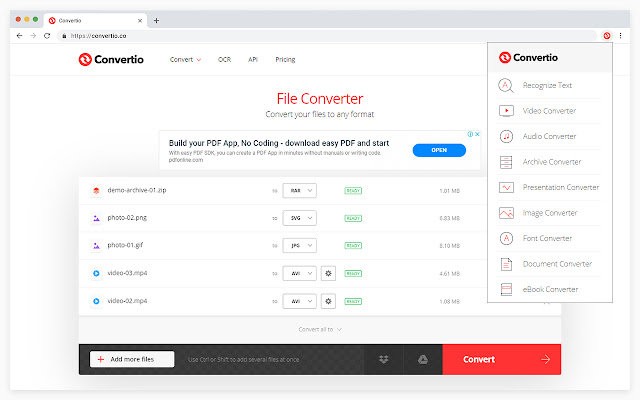 Convertio chrome插件是让用户可以在浏览器之中在线转换各种文件格式的格式转换器,无论是图片格式,还是音频格式、文档格式都可以在谷歌浏览器之中进行在线转换,让用户不用再下载麻烦的软件。