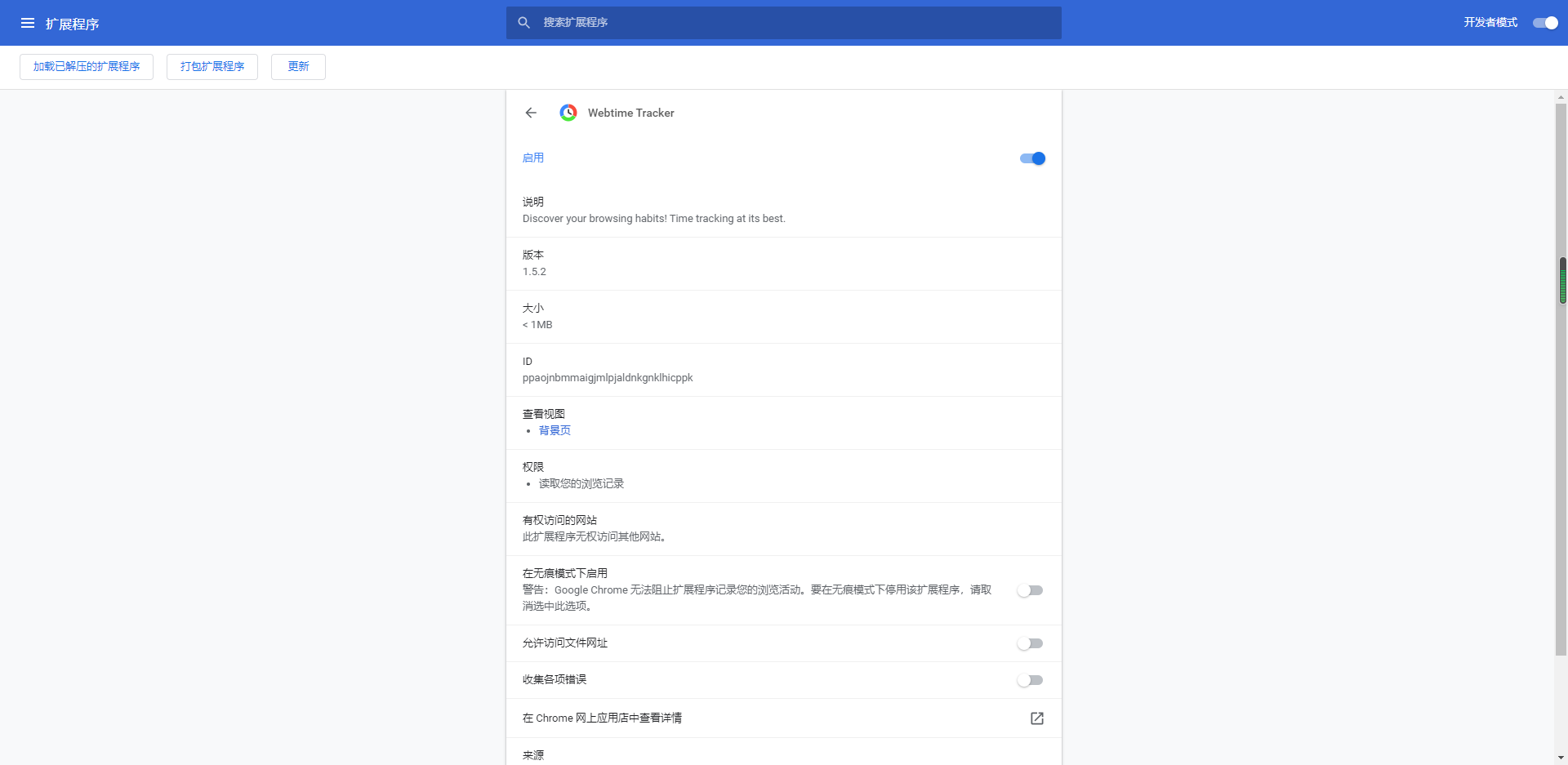 Webtime Tracker谷歌插件是根据用户的上网数据来分析用户上网习惯的该工具,让用户可以知道你在那些网站上面花费的时间更多,让用户随时都可以通过这些数据督促自己更加专注的进行工作和学习。