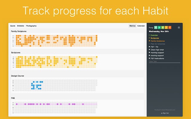 Hey Habit 旨在帮助您保持健康的生活方式并实现您的长期目标。它强调重复性任务,使您能够一次做出决定并坚持下去。项目允许您将更大的目标分解为单独的部分,您可以选择将这些目标安排在特定日期。